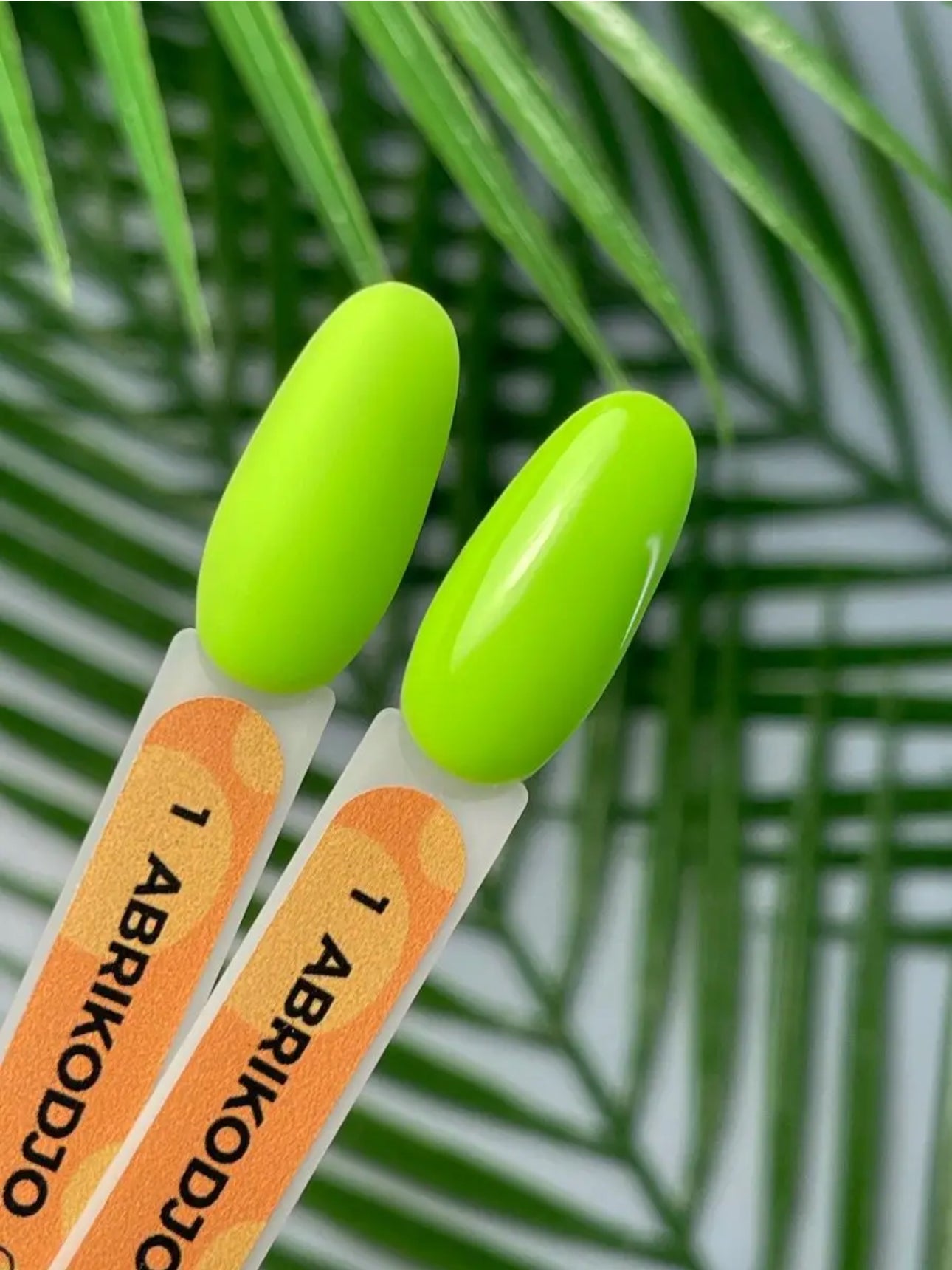 ✔️ Shade: Abrikodjo Gel Polish №1 – neon lime green, fresh and energetic.