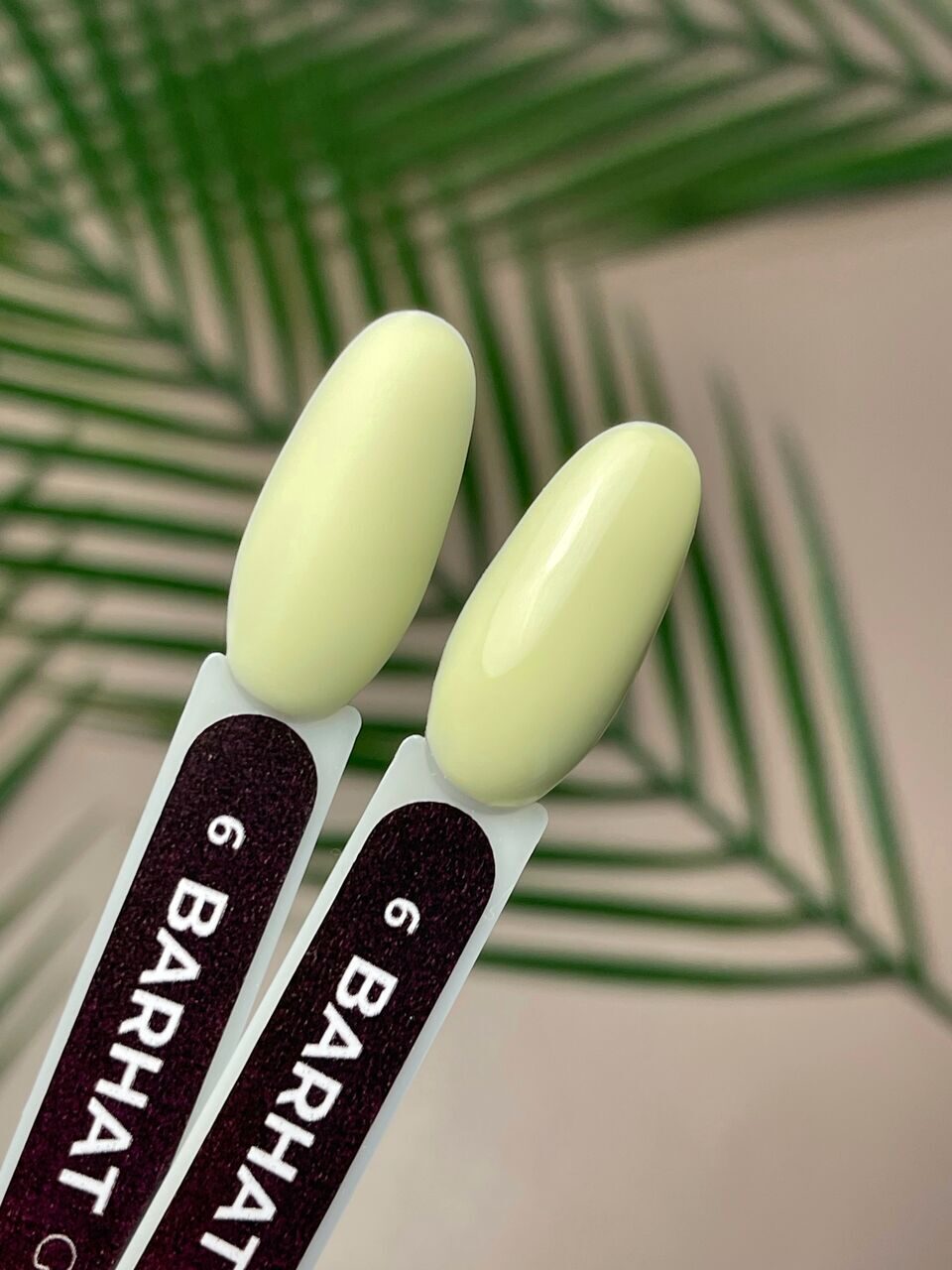✔️ Shade: Barhat Gel Polish №6 – Light yellow with a cheerful spring-like shade.