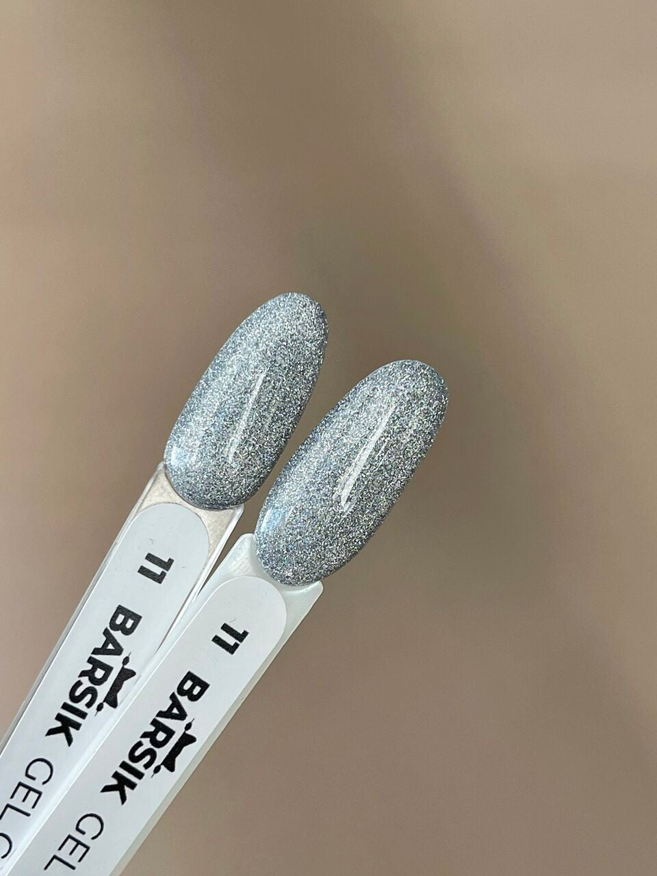 ✔️ Shade: Barsik Gel Polish №11 – Icy silver with high-shine micro-glitter