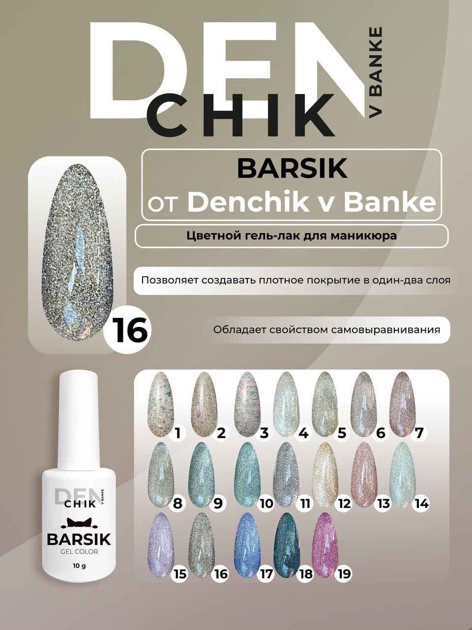 The Barsik Gel Polish series from Denchik_v_banke includes 19 richly pigmented colors designed for long-lasting professional manicure and pedicure. With its high pigment concentration, this gel polish delivers intense, even coverage in just one or two coats.