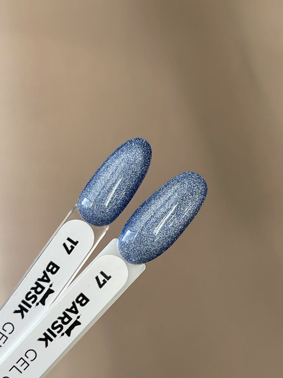✔️ Shade: Barsik Gel Polish №17 – Denim blue with silver micro-shimmer