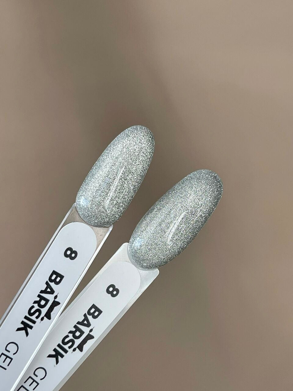 ✔️ Shade: Barsik Gel Polish №8 – Cool silver with bright reflective micro-shimmer