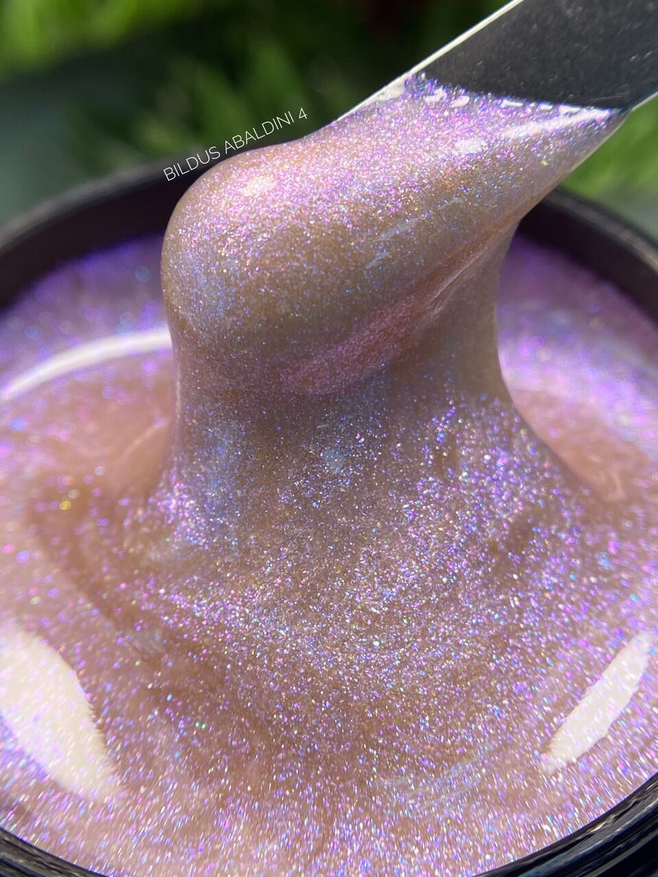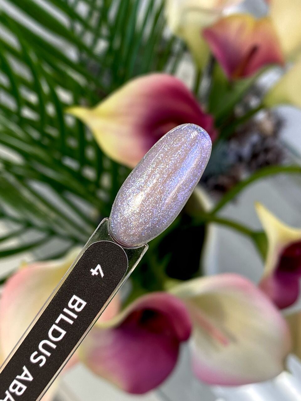 ✔️ Shade: Bildus Abaldini Gel №4 – semi-transparent cool silver-lavender with fine chameleon flakes