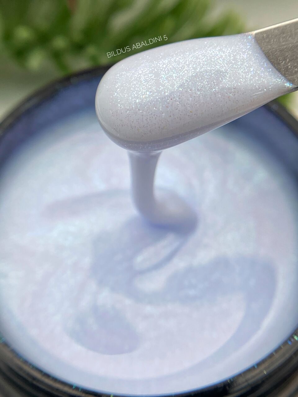 ✔️ Shade: Bildus Abaldini Gel №5 – semi-transparent milky white with fine chameleon flakes