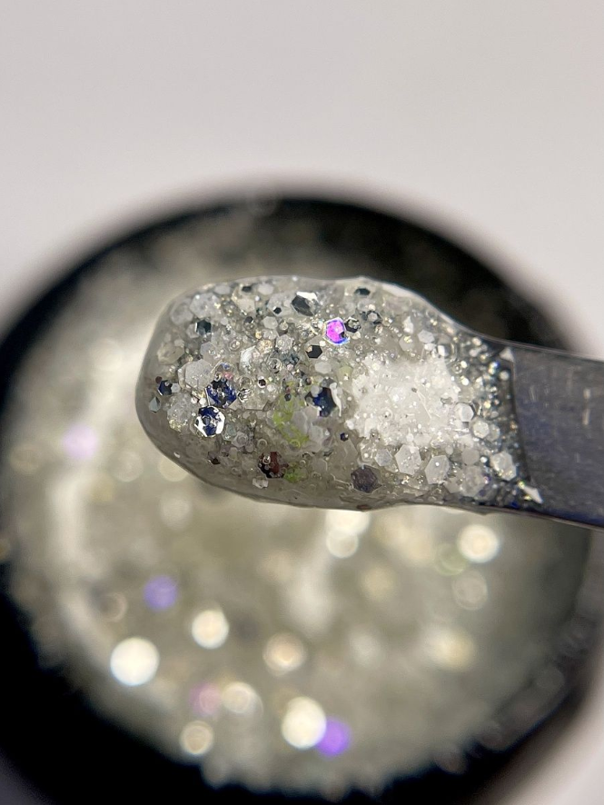 ✔️ Shade: Blэsk Gel Color №1 – silver-grey glitter mix with holographic sparkles