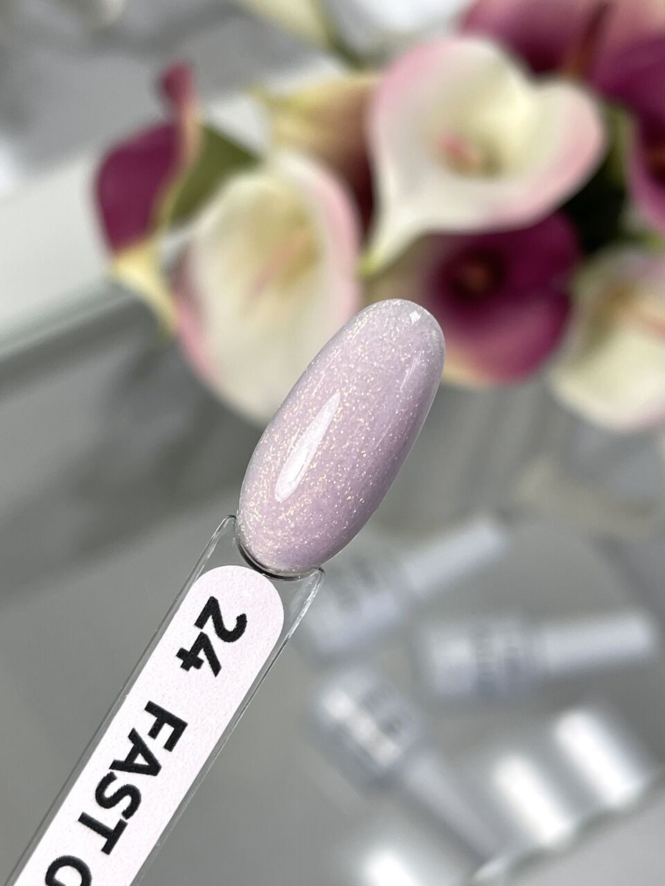 ✔️ Shade: Fast Gel №24 – Soft mauve-lilac with silver shimmer, semi-sheer coverage.