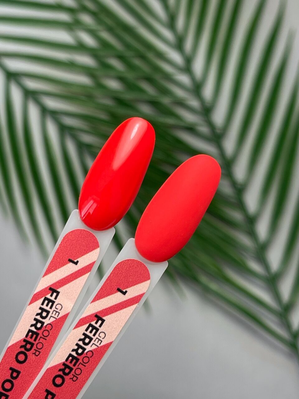 ✔️ Shade: Ferrero Porshe Gel №1 – Bright red with a fiery undertone, full opaque coverage.