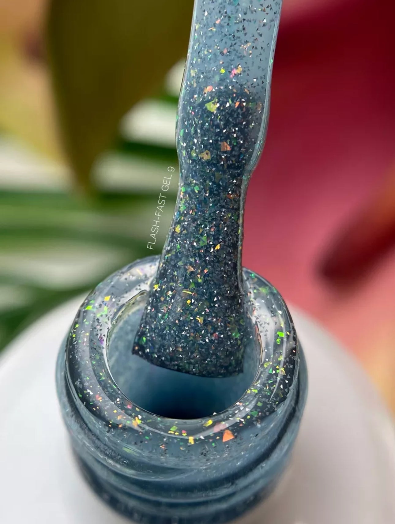 ✔️ Shade: Flash-Fast Gel №9 – semi-transparent aqua teal with reflective micro-shimmer
