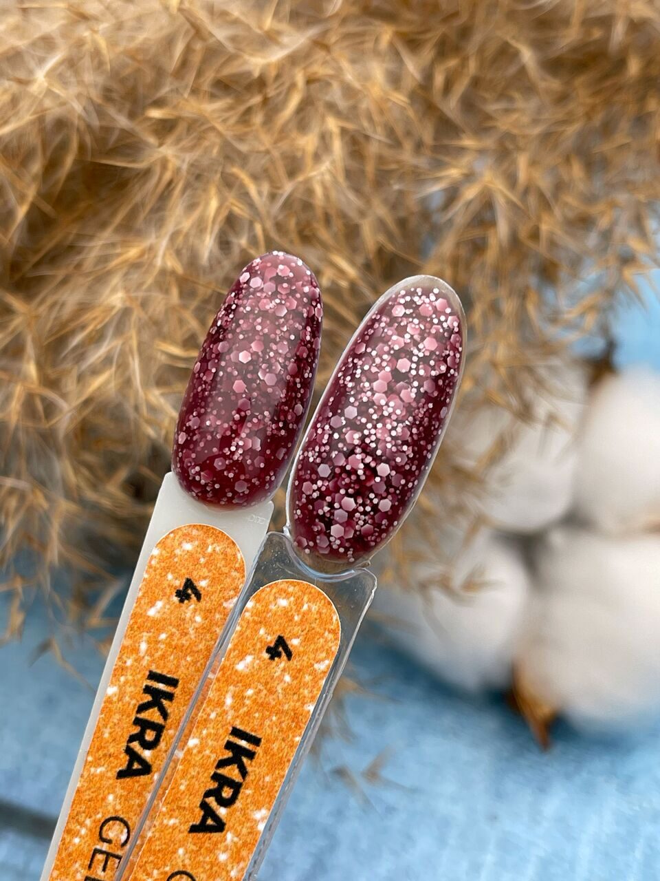 ✔️ Shade: Ikra Gel Polish №4 – Deep burgundy red with bold speckles, opaque coverage.