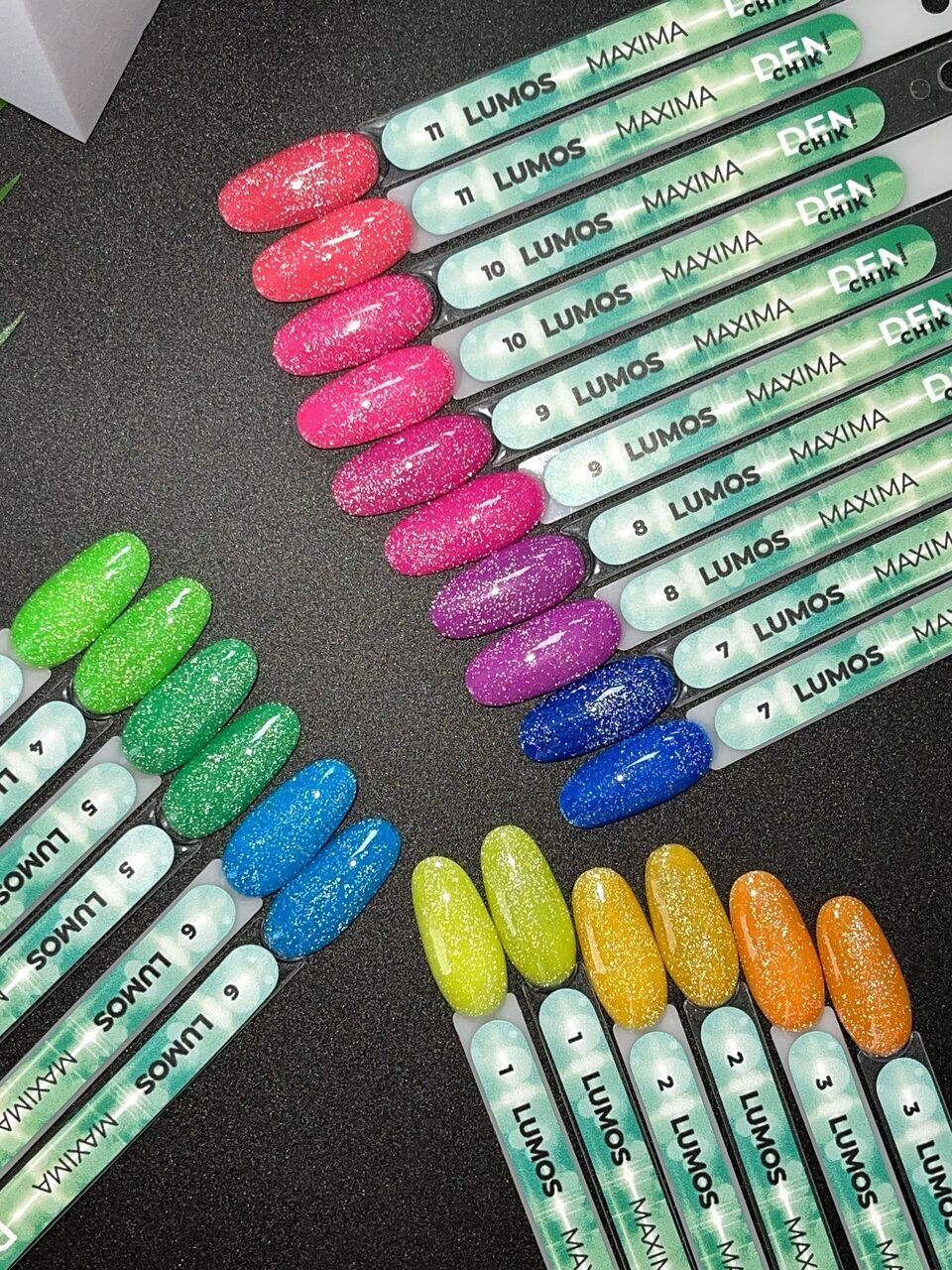 The Lumos Maxima Gel Polish series from Denchik_v_banke includes 11 dazzling shades infused with luminous shimmer. Designed for vibrant coverage in 1–2 layers, these gel polishes feature excellent self-leveling properties, preventing flooding of cuticles and sidewalls. Each shade delivers maximum color saturation with sparkling depth, making every manicure radiant and long-lasting.