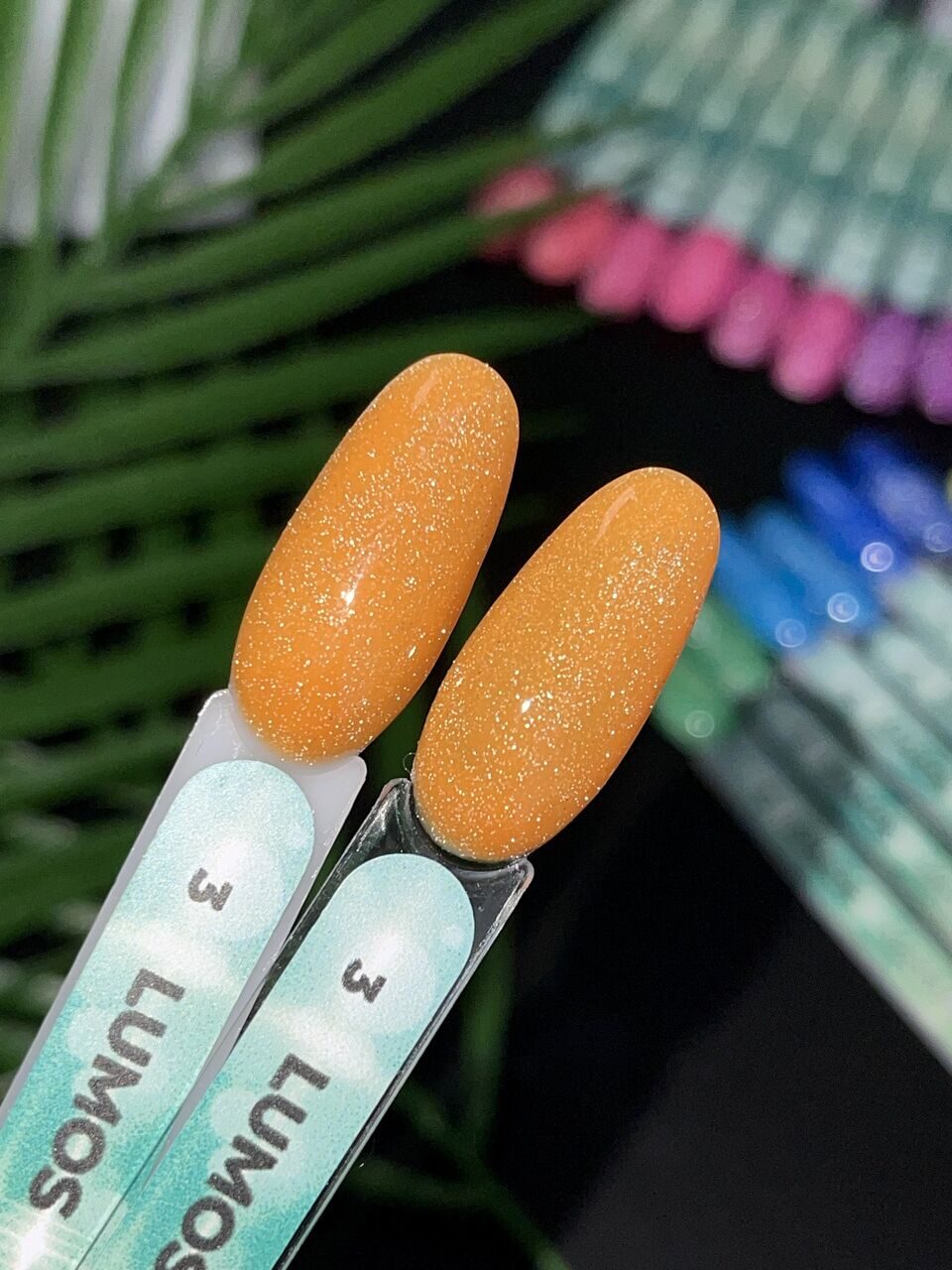 ✔️ Shade: Lumos Maxima Gel Polish №3 – Juicy orange with radiant sparkle, vibrant opaque coverage.