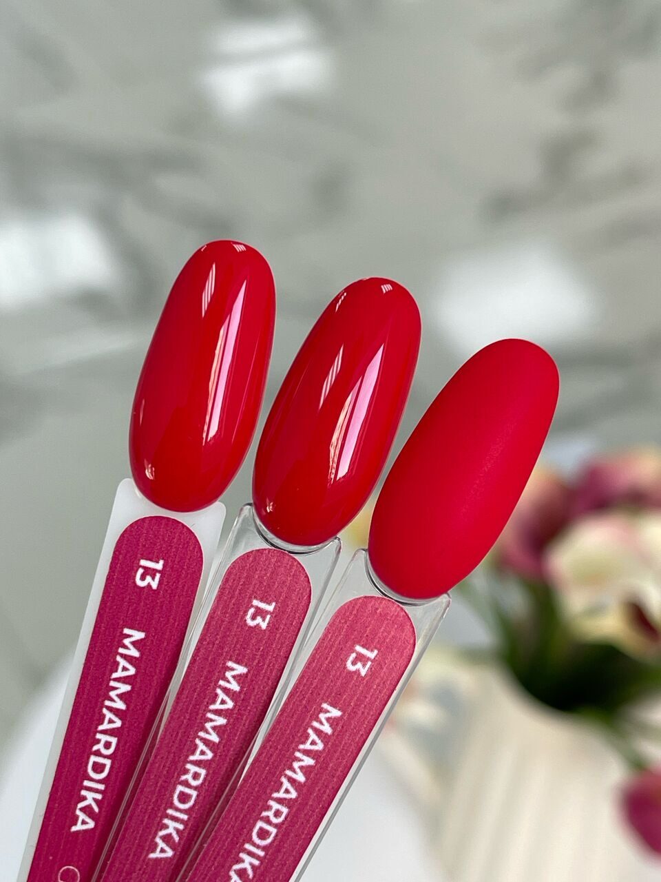 ✔️ Shade: Mamardika Gel №13 – Rich crimson red, full opaque coverage.