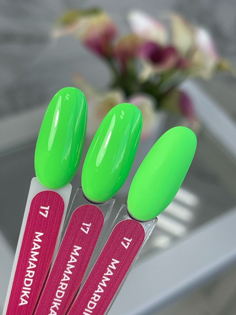✔️ Shade: Mamardika Gel №17 – Neon apple green, full opaque coverage.