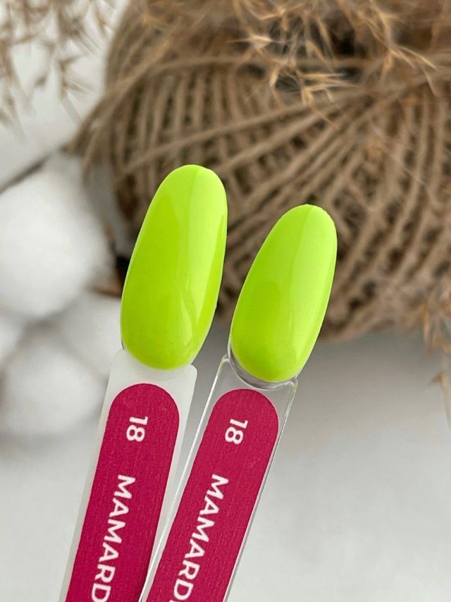 ✔️ Shade: Mamardika Gel №18 – Chartreuse yellow-lime, full opaque coverage.