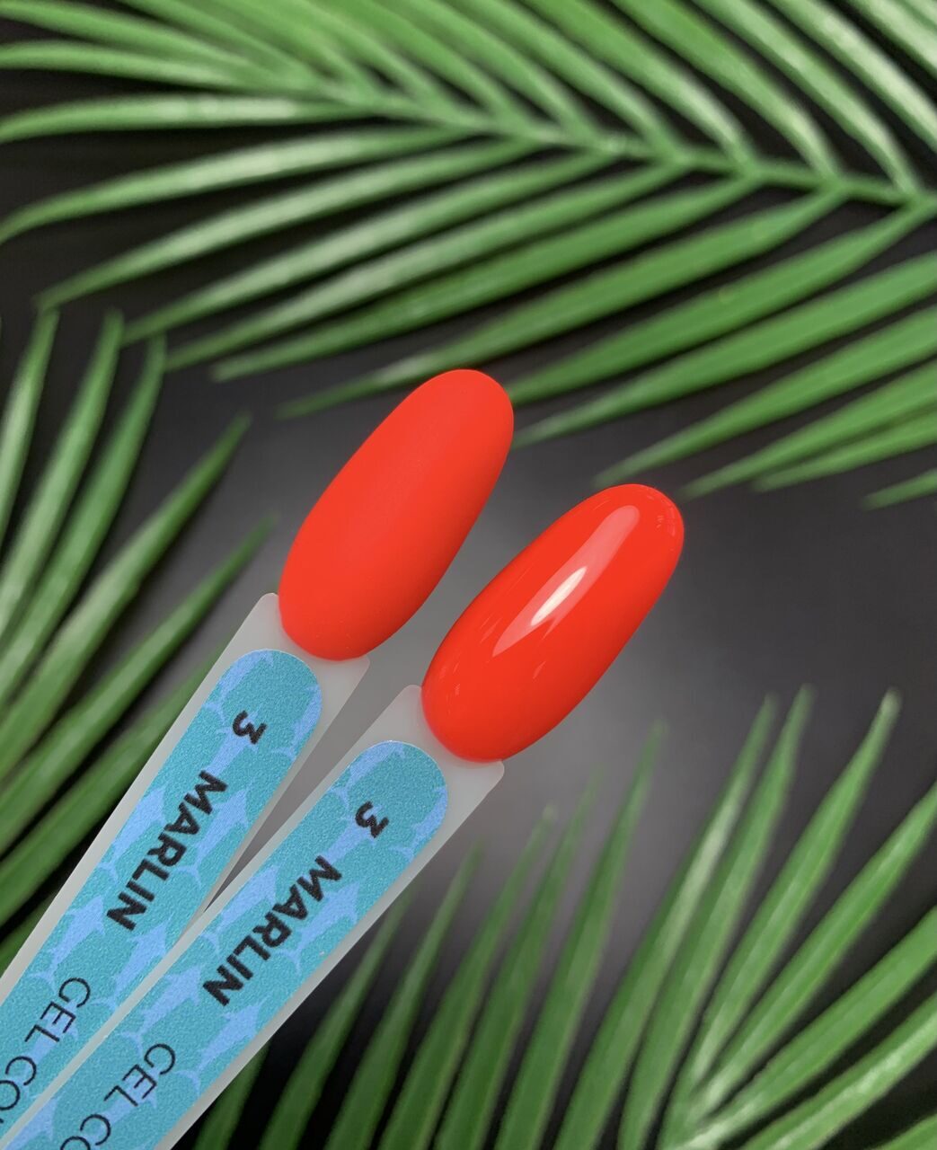 ✔️Shade: Marlin Gel №3 – Hot coral-red, vibrant opaque coverage.