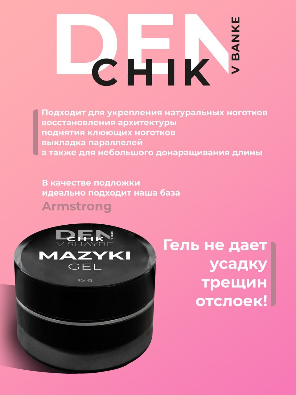 The Mazyki Gel series from Denchik_v_banke includes 6 medium-consistency builder gels with an elegant pearl marble texture. Designed for strengthening, restoring architecture, lifting downward-growing nails, and small extensions (up to 1–2 mm). The gels self-level with a single flip of the hand, apply smoothly, and maintain shape without shrinkage or lifting. Ideal for both full coverage and as a decorative base under French manicures or nude designs.