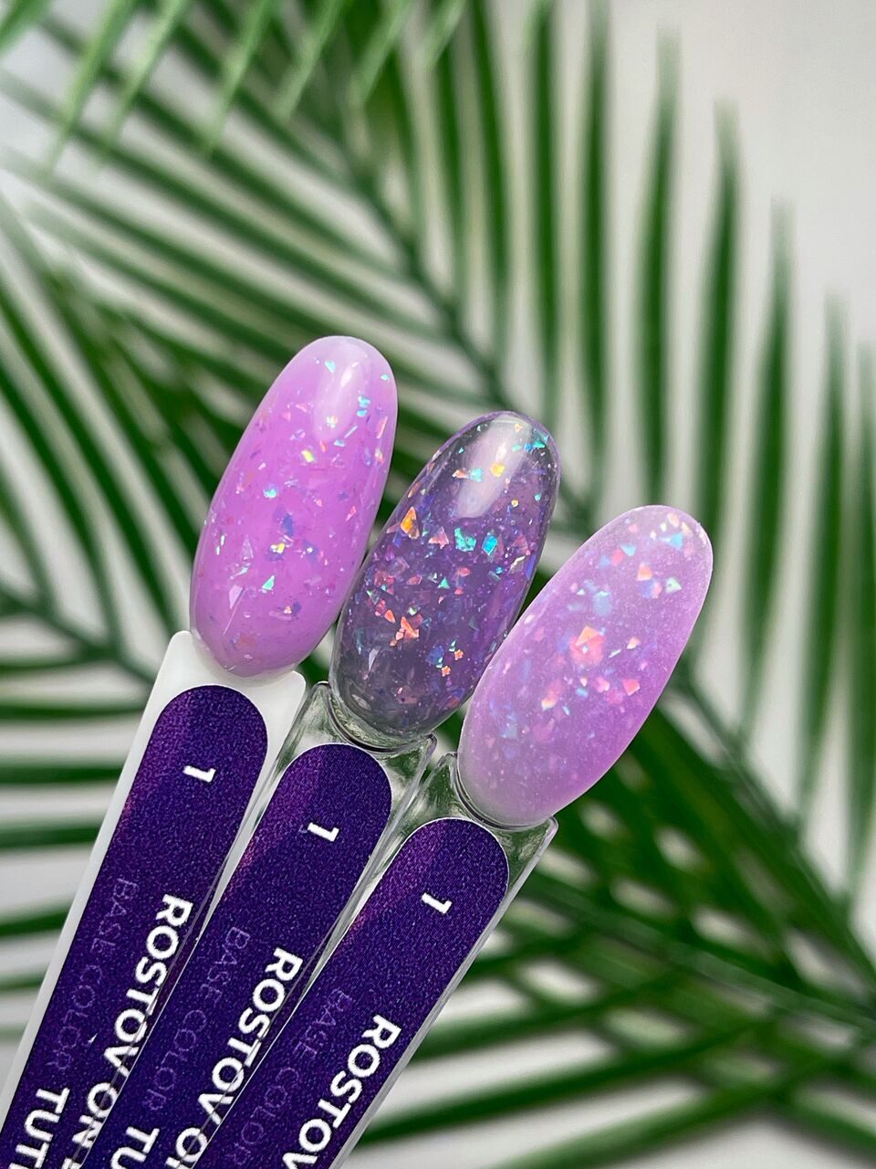 ✔️ Shade: Rostov on Don Tutina №1 – Popcorn Tone (lavender-pink base with holographic flakes)