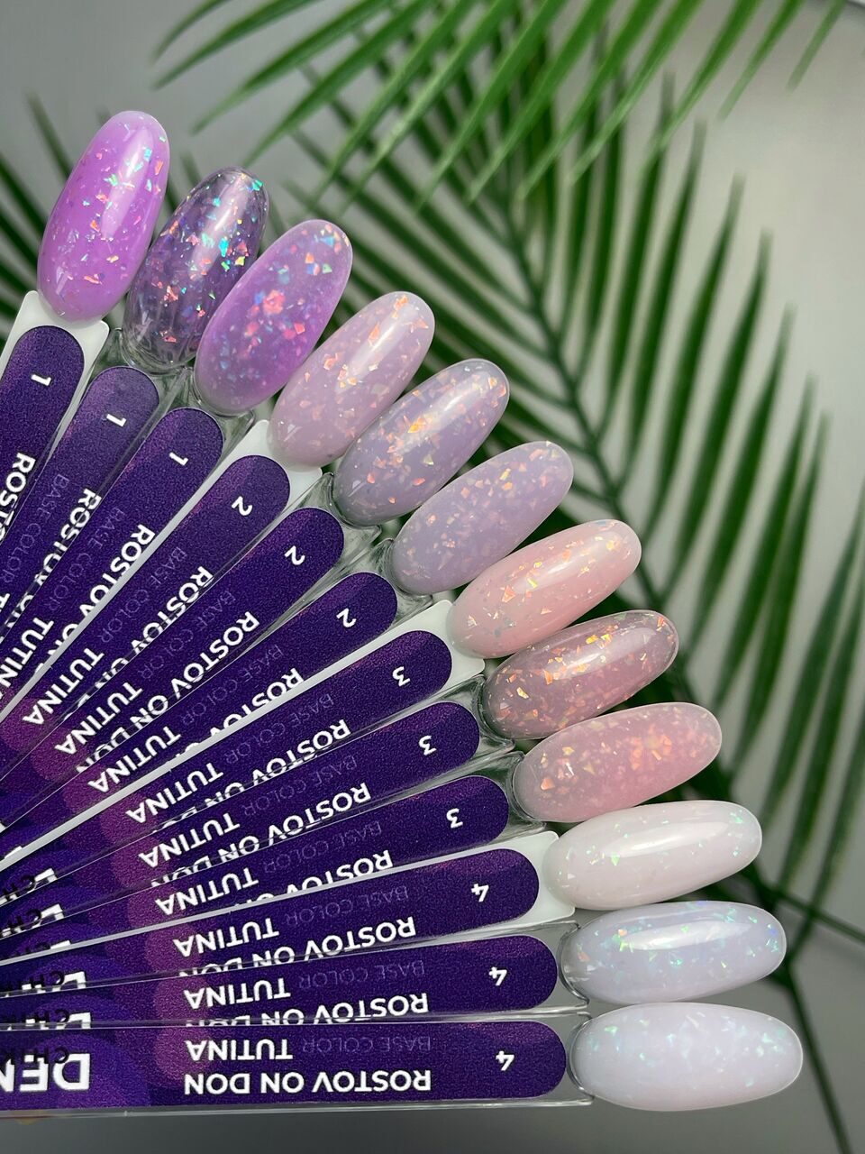 The Rostov on Don Tutina Series features nude-toned camouflage builder bases infused with vibrant holographic flakes. This base has a lightweight consistency and spreads evenly without bubbles or shrinkage, making it perfect for both beginners and professionals.