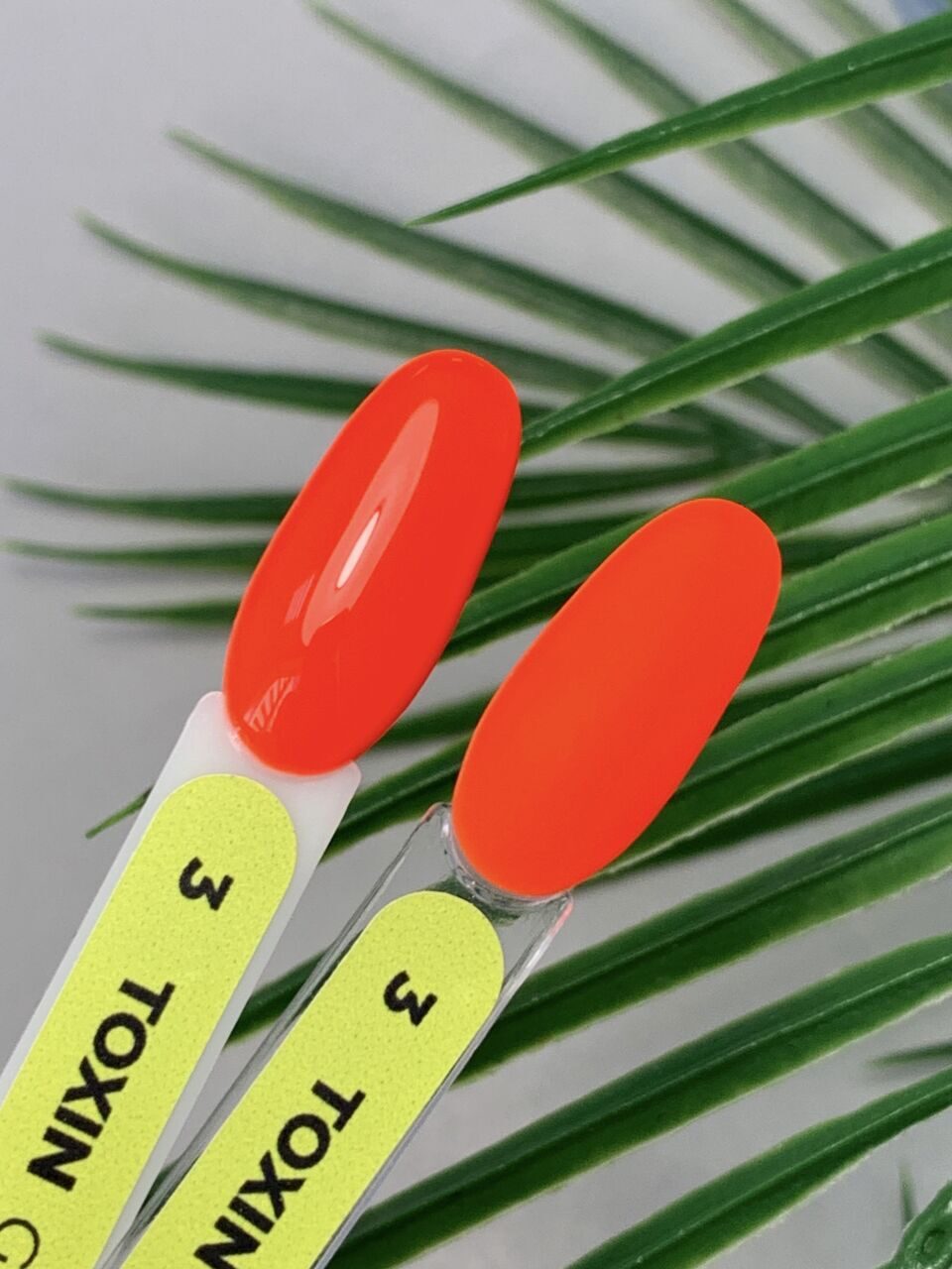 ✔️ Shade: Toxin Gel Polish №3 – Fiery coral-red, cream finish, opaque.