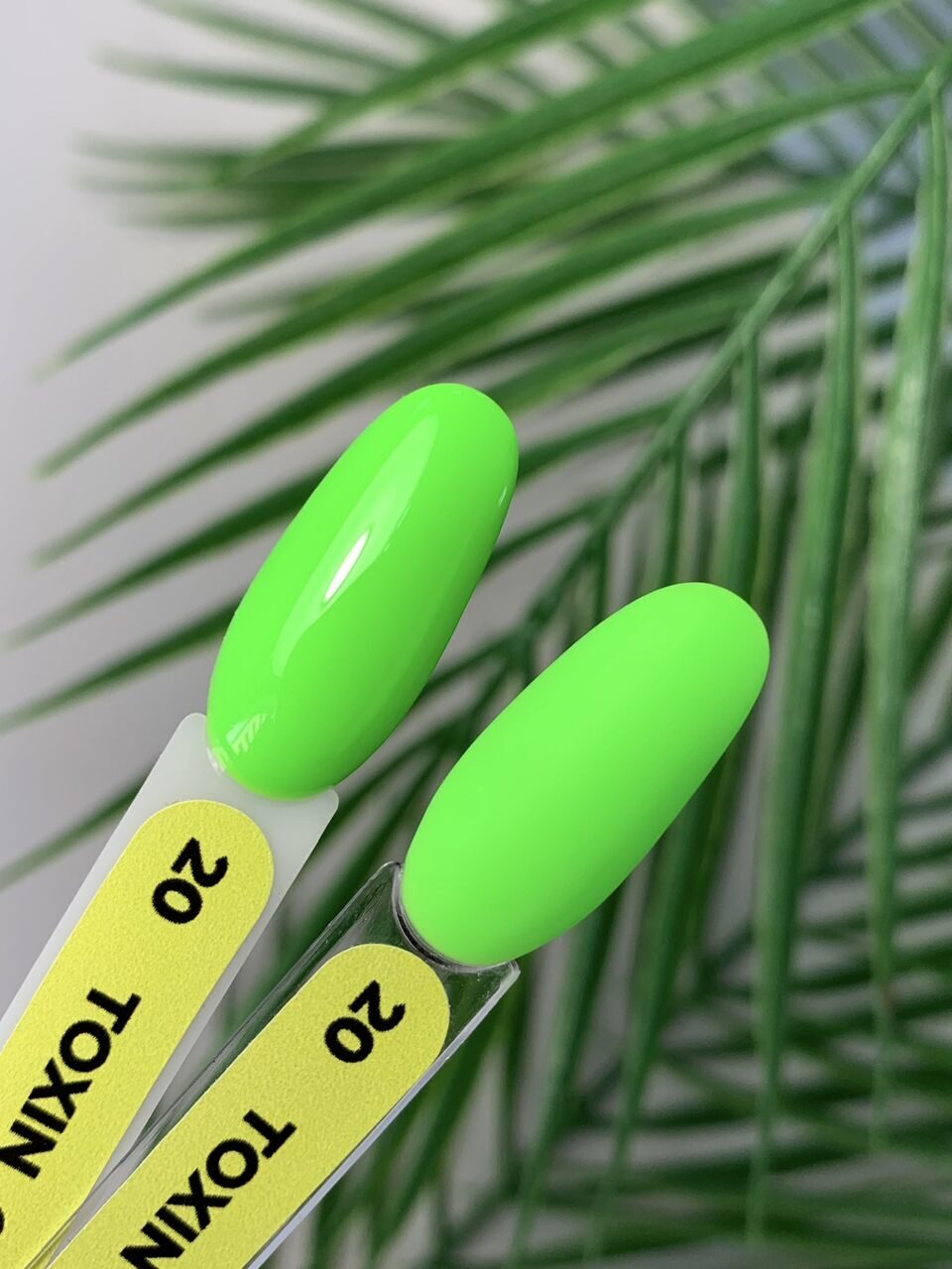 ✔️ Shade: Toxin Gel Polish №20 – Neon apple green, cream finish, opaque.