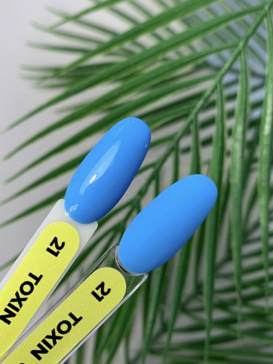 ✔️ Shade: Toxin Gel Polish №21 – Bright sky blue, cream finish, opaque.